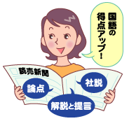 つまり、新聞を毎日読み続けることで、自然に知識を身に着けることが最も有効な国語試験対策とも言えます。読売新聞なら「社説」や解説面「論点」、くらし家庭面の連載などの文章が、テーマ、論理展開ともに現代文の勉強に最適です。